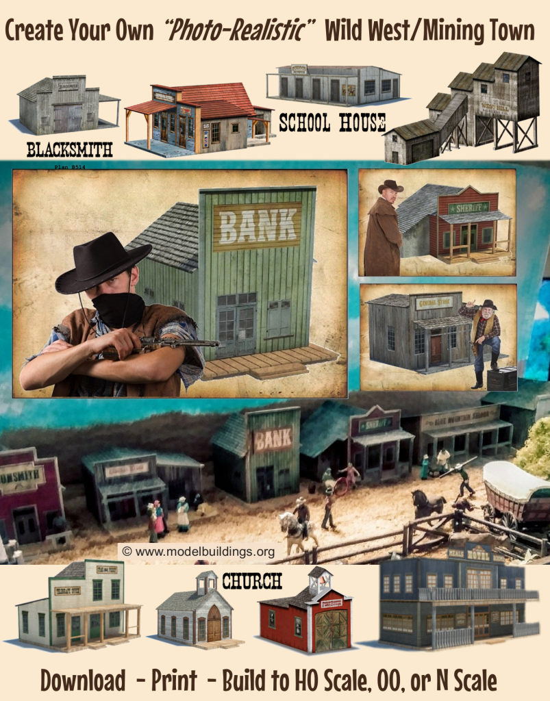 Whether you’re drawn to the drama of train robberies, the charm of dusty saloons, or the ingenuity of early railroads, there’s a place for it on your layout. And with printable downloaded kits from https://www.modelbuildings.org, it’s easier than ever to bring your vision to life.“When steam met steel, the Wild West was never the same.” From dusty trails to iron rails, railroads didn’t just connect towns… they built legends. Explore the range on the website under the category Wild West / Mining.
