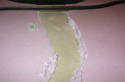 Some days later my wife and I went to Lowes to buy a dry wall saw to use with making landscapes (her butcher knives just didn’t cut it). My wife helped me with some of the cutting and she cut up and down. At first, I went back to cut the bank to 45 degrees and then left some of the banks alone because it added a nice effect and variation. I then glued the foam to the board.