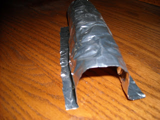 Once you are happy with the crumple effect, flatten the foil out and then curl it into an arch that roughly matches the shape of the portal. Next, fold the outside edges of the lining (about 1/2 inch worth) outward to make ‘feet’ that run the length of the lining on both sides. When looked at from the front, it should look like the Greek letter omega ( like this -> Ω ). These feet are used to attach the foil lining to the layout’s surface so it won’t shift about.
