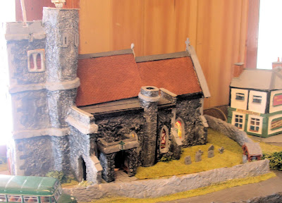 You then need a roof, this can be made to your board type your using, covered with Tiling paper, or I have found the back side of hardboard has a etched markings on it that when painted a dark red looks realistic, or with plenty of time and patience, put a layer of plaster on the roof, smooth it out nice and flat, then when dry, mark out a slated type roof.