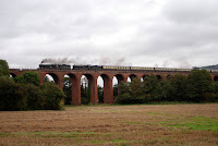 The double headed train seen crossing the viaduct and at the lineside at Pontrilas is hauled by Kinlet Hall no. 4936 (not Hagley Hall no. 4930) and Nunney Castle no.5029.