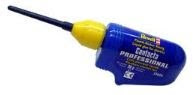 Testors also make both liquid and a gel type solvent based styrene cements. The liquid versions come in a small bottle with a long stainless steel needle like stem for easy control and to prevent evaporation.