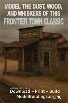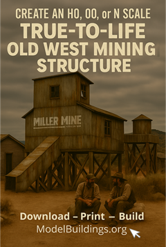 Now, thanks to https://www.modelbuildings.org there is a expanding library of downloadable model plans displaying old wild western buildings such as a sheriffs office, saloons, Bank, telegraph office, blacksmiths, church, dry goods store, hotel, general store, gun smith, barbers shop, stage depot, and school house. The old wild west town models in this series nicely complement the interesting range of mining town structures also available as downloadable models.